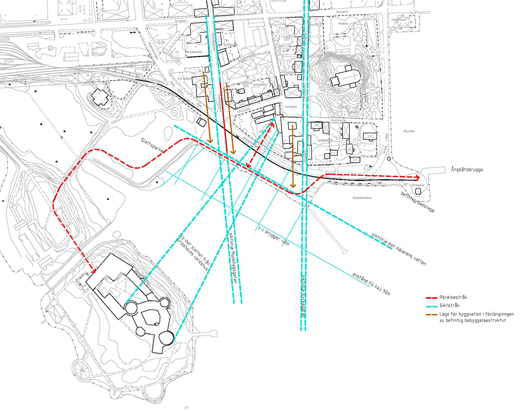 Genom att placera magasinsbyggnaderna så att strategiska siktlinjer bibehålls, vill vi förhindra att byggnationen bildar en barriär mellan stad och vatten. Genom att magasinsbyggnaderna dels är låga, dels öppnar sig med entréer och glasade fasader åt båda håll undanröjs bärriärrisken ytterligare.