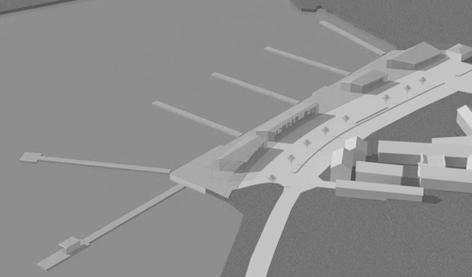 Hamnplanen - idag en grusad parkeringsplats - skall etappvis utvecklas med moderna magasinsbyggnader, kajstråk, bryggor och ett stensatt torg, som tillsammans knyter ihop staden med vattnet. Magasinsbyggnaderna skall förutom gästhamnsanknutna funktioner husera verksamheter med koppling till sjösport och livets goda.
